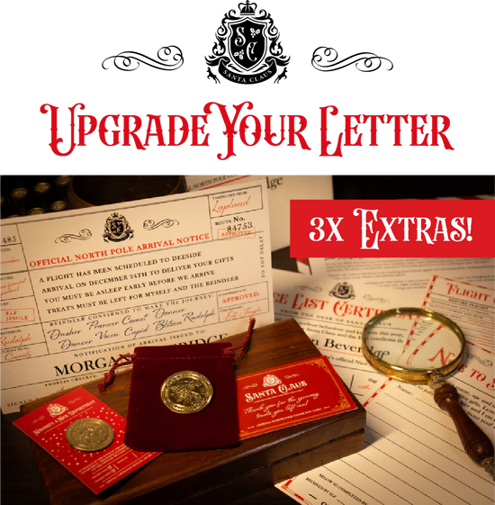 12 personalisation points including, name, age, achievements so that your child receives a truly magical personalised letter from Santa. Beautifully designed with authentic details such as Santa Claus’s official emblem, Santa and Elves signatures, stamps and other magical touches to make it look like it was really sent from the North Pole.